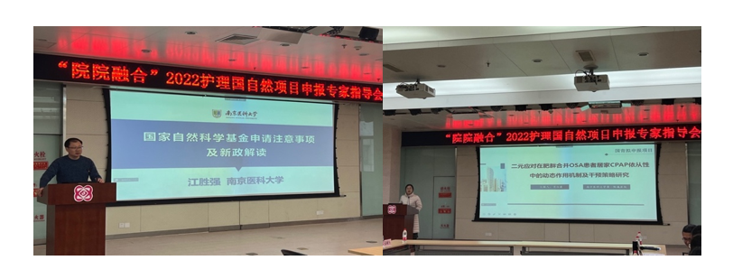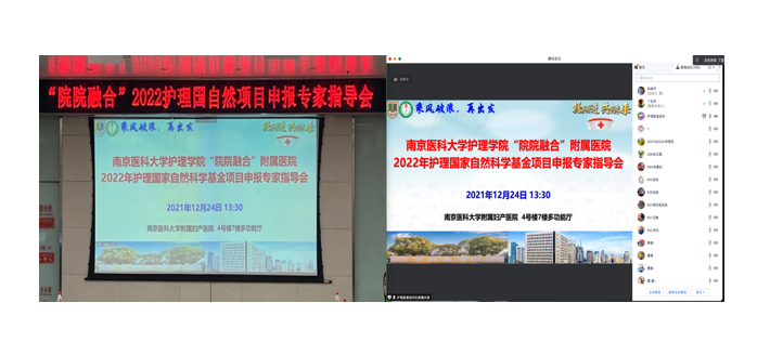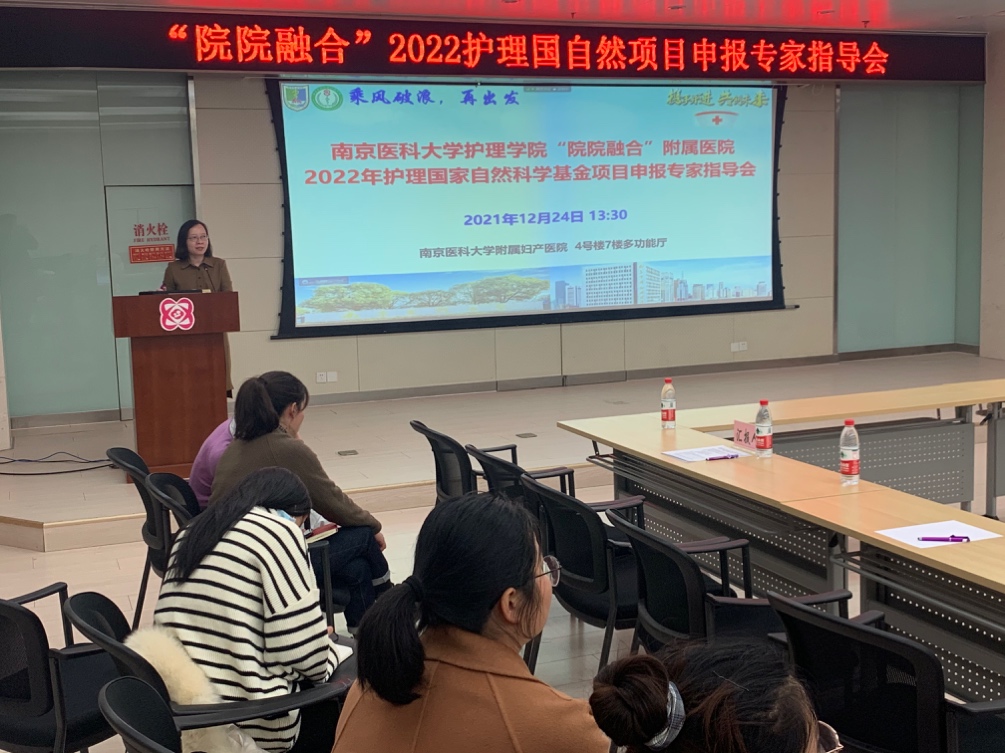 12月24日下午,为提升附属医院护理课题质量,推进国自然项目申报,我院在南京医科大学附属妇产医院(南京市妇幼保健院)成功召开了2022附属医院护理国自然项目申报专家指导会。本次活动依托“院院融合”平台,由南京医科大学护理研究中心及附属妇产医院护理部承办,丁亚萍副院长主持,以线下线上结合的形式进行交流。现场邀请了南京医科大学科技处副处长江胜强作政策解读,医政学院姚俊教授、米兰(中国)让运动改变生活许勤教授、孙国珍教授、公共卫生学院尤华副教授、附属妇产医院季晨博副教授作为点评专家,附属妇产医院丁丰美纪委书记、医学研究中心季晨博主任、护理部朱珠主任、临床护理教研室张爱霞主任、护理研究中心王洁主任、朱姝芹副主任、以及各附属医院拟申报项目的负责人现场参会,附属医院相关老师及研究生等线上参会,线上线下近200余人参加了本次活动。