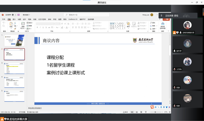 孟瑶老师首先就上半年该课程开设情况以及实践课程安排做了总结,并根据实际情况,就明年课程安排、留学生课程团队建设、实践课程改革等问题向各位老师征求意见,各位老师进行热烈讨论。嵇艳老师就实践课教学形式与各位老师进行了深入探讨,并提出了建设性的建议。集体备课会对新学期课程安排、留学生课程团队建设、实践课教学形式达成一致意见。