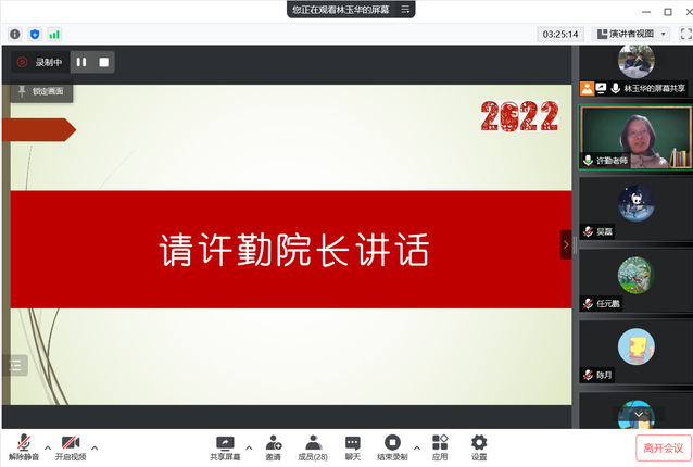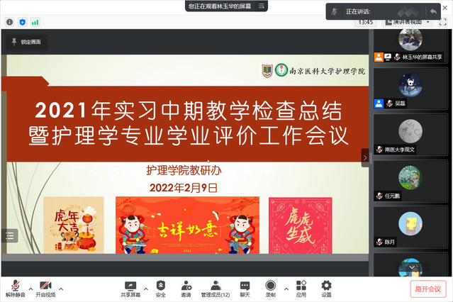 教研办林玉华主任首先做2021年度实习中期教学检查总结汇报,展示了宁内10家实习基地现场检查及宁外20家实习基地自查结果,实习生和带教老师问卷调研结果,汇报了对2022年度实习点动态调整的思考和建议。