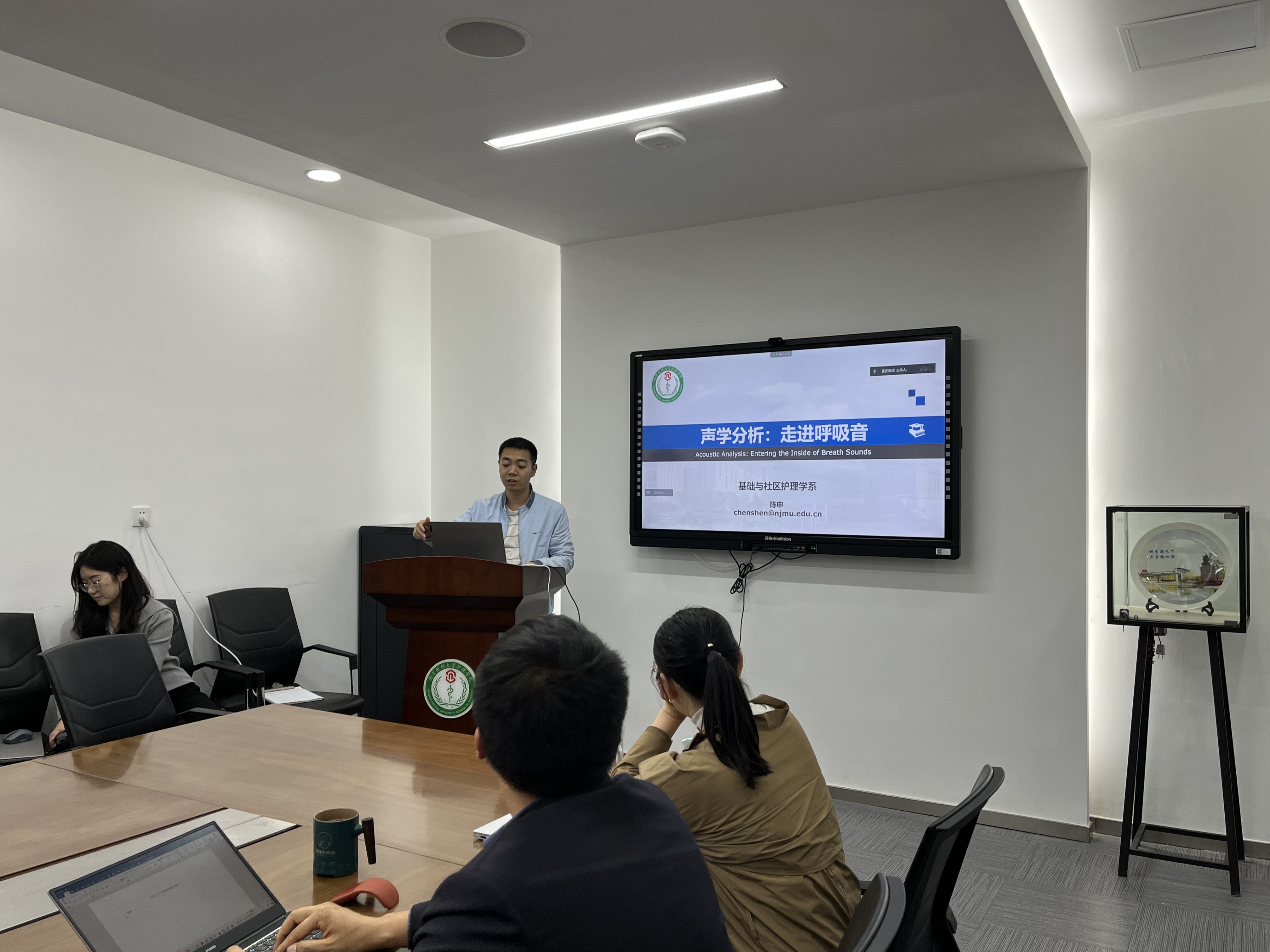 本次活动中,陈申老师以“声学分析:走进呼吸音”这一主题展开他的交流分享,系统阐述了声音采集、提取、预处理、降噪、声学分析等内容,并结合自身课题申报内容分享呼吸音的相关研究结果。表示声学分析便于产出较多的参数数据,顺应大数据、机器学习潮流。在互动环节中,李现文老师表示基于原始数据输出的衍生数据分析,才更具有研究意义。刘扣英老师也表示对声波和误吸识别相关性的研究很感兴趣,指出研究设计要回归于临床问题。