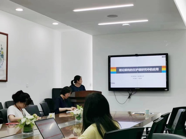 胡洁蔓老师主讲的主题是“理论解构在护理研究中的应用”。胡老师清晰辨析了概念、构念、变量、理论之间的区别与联系,以实例呈现理论解构的具体实施步骤,强调测量构念的工具必须与构念相匹配。参与本次沙龙的教师、研究生们反响热烈,对如何加强理论与实证的紧密结合,以及强化理论的应用进行了讨论。朱姝芹老师表示研究生需建立科研思维,保证从理论到应用各个环节之间的连贯性。唐楚蕾老师认为应全面细致分析理论,深入了解理论的起源与背景,才能与自身的课题相联系,指导研究的开展。李现文老师表示硕士研究生可以使用情境性理论或实践理论指导实践,中域理论需要进行转化才能拿来运用。