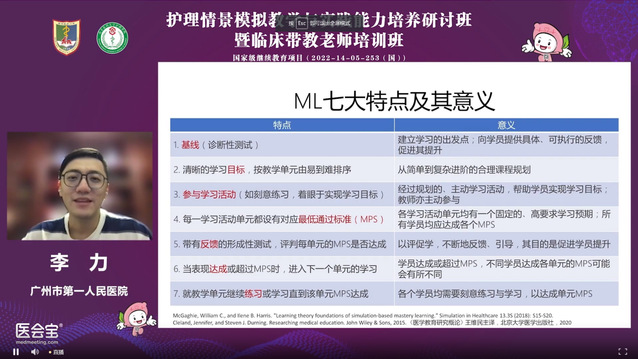 广州市第一人民医院模拟医学中心师资发展顾问李力老师与新疆克州人民医院神经内科主任、南京医科大学第二附属医院神经内科副主任医师吴岩峰老师以团队的形式,运用串烧式课程设计,以ICU护士管道维护为例,阐述掌握性学习特点、基于模拟的掌握性学习在护理模拟教育中的应用、效果和意义以及掌握性学习转化为科学的方法和技巧。