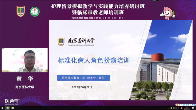 医学模拟教育中心黄华副主任以《标准化病人的角色扮演培训》为题,通过典型案例分享,阐释标准化病人角色扮演的培训要素、可能遇到的问题及推荐解决办法。