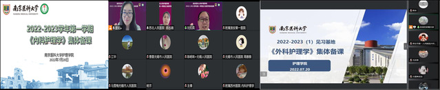 7月20日(周三)下午14:00-16:30,米兰(中国)让运动改变生活线上召开2022-2023学年第一学期见习教学集体备课会议。教务处季旻珺副处长、米兰(中国)让运动改变生活全体院领导、学系主任、全体课程负责人、教研办主任,以及三年级及3+2见习教学基地临床护理教研室的领导、全体课程负责人和任课老师参加了会议。会议由丁亚萍副院长主持。