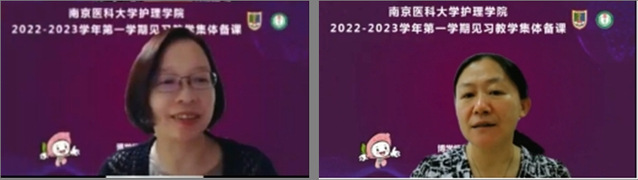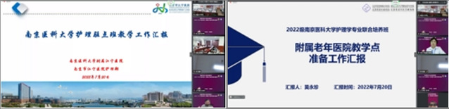 联合培养班2家见习教学基地汇报工作。附属江宁医院临床护理教研室秘书张曦月老师汇报2021-20220学年3+2专业见习教学工作总结,下学年新培养方案的执行及见习教学同质化建设的协同情况。附属老年医院作为新的见习教学基地,护理部莫永珍主任汇报了医院的教学管理架构、制度建设、师资遴选、课程建设、学生学习与生活环境等方面的准备情况。
