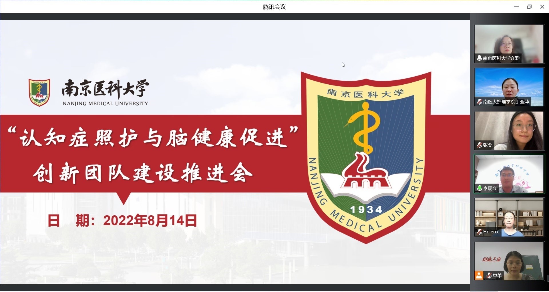 认知症照护与脑健康促进团队建设推进会上,李现文老师就团队组建与启动、团队规划、管理制度、能力提升、项目推进情况、现存问题与解决策略等方面做出详细的介绍。创新团队成员分员汇报了在研课题和项目推进情况。团队指导老师崔焱教授、丁亚萍副教授针对团队建设和项目推进给予了指导。许勤院长在总结发言中肯定了认知症照护与脑健康促进团队做出的努力,并就团队建设做好分步规划、研究场所联动、下一阶段工作部署等提出了要求。最后,许院长强调创新团队之间要通力合作,共同为学院学科发展贡献力量。
