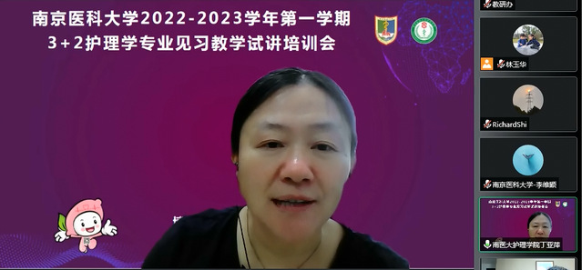 8月19日下午,米兰(中国)让运动改变生活线上召开2022-2023学年第一学期护理联合培养班(护理专业3+2)见习教学试讲培训会议。学院教学督导韩群颖教授、林晖教授、王锦帆教授、施荣根教授、崔焱教授出席会议。米兰(中国)让运动改变生活全体领导、各学系主任、附属江宁医院和附属老年医院临床护理教研室教学团队以及学院护理专业3+2课程师资共60余位老师参加了会议。会议由丁亚萍副院长主持。