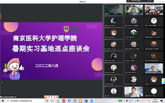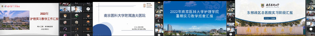 实地走访的实习教学基地包括第一附属医院、附属明基医院、附属脑科医院、社区护理教研室(含南京市五个社区卫生服务中心:新街口、华侨路、宁海路、江东及东山),其余25家综合性实习教学基地分成6组,采用线上形式开展座谈。