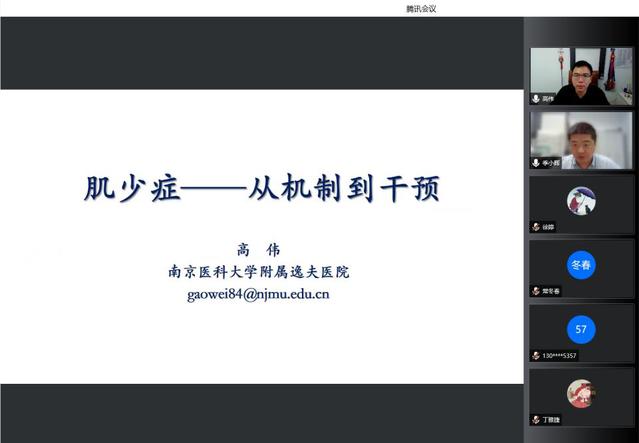 高伟教授以“肌少症-从机制到干预”为主题,详细介绍了肌少症研究的前沿和趋势,同时分享了南京医科大学附属逸夫医院建立肌少症防控体系的工作。