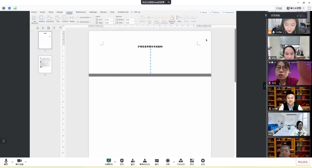 为更好对同学知识掌握情况进行考察护理人文与管理学系于113日开展了3+2护理本科生《护理信息学》教研活动,对课程期末考核内容及形式进行研讨。本次参会人员有课程负责人杨如美副教授、授课教师羊洋、李莎、陈申、任元鹏及助教高诗瀛。杨如美老师主持本次会议。