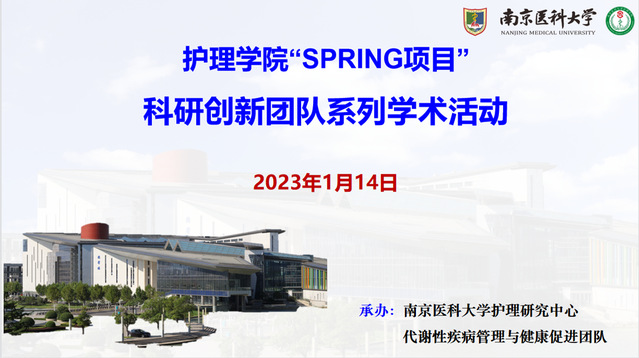 2023年1月14日,新年伊始,我院“SPRING项目”-代谢性疾病管理与健康促进团队开展科创团队建设推进会,邀请我校公共卫生学院彭志行教授做专题讲座与交流,许勤院长、学院和附属医院师资、研究生和本科生等参加了本次会议,王洁教授主持。