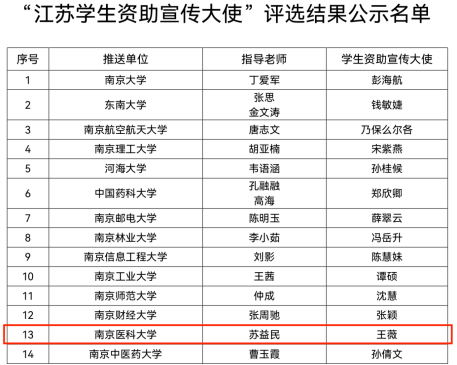 近日,江苏省教育厅公布了2022年“苏乡永助”资助育人主题活动评选结果,我院2020级本科生王薇同学获评江苏学生资助宣传大使。