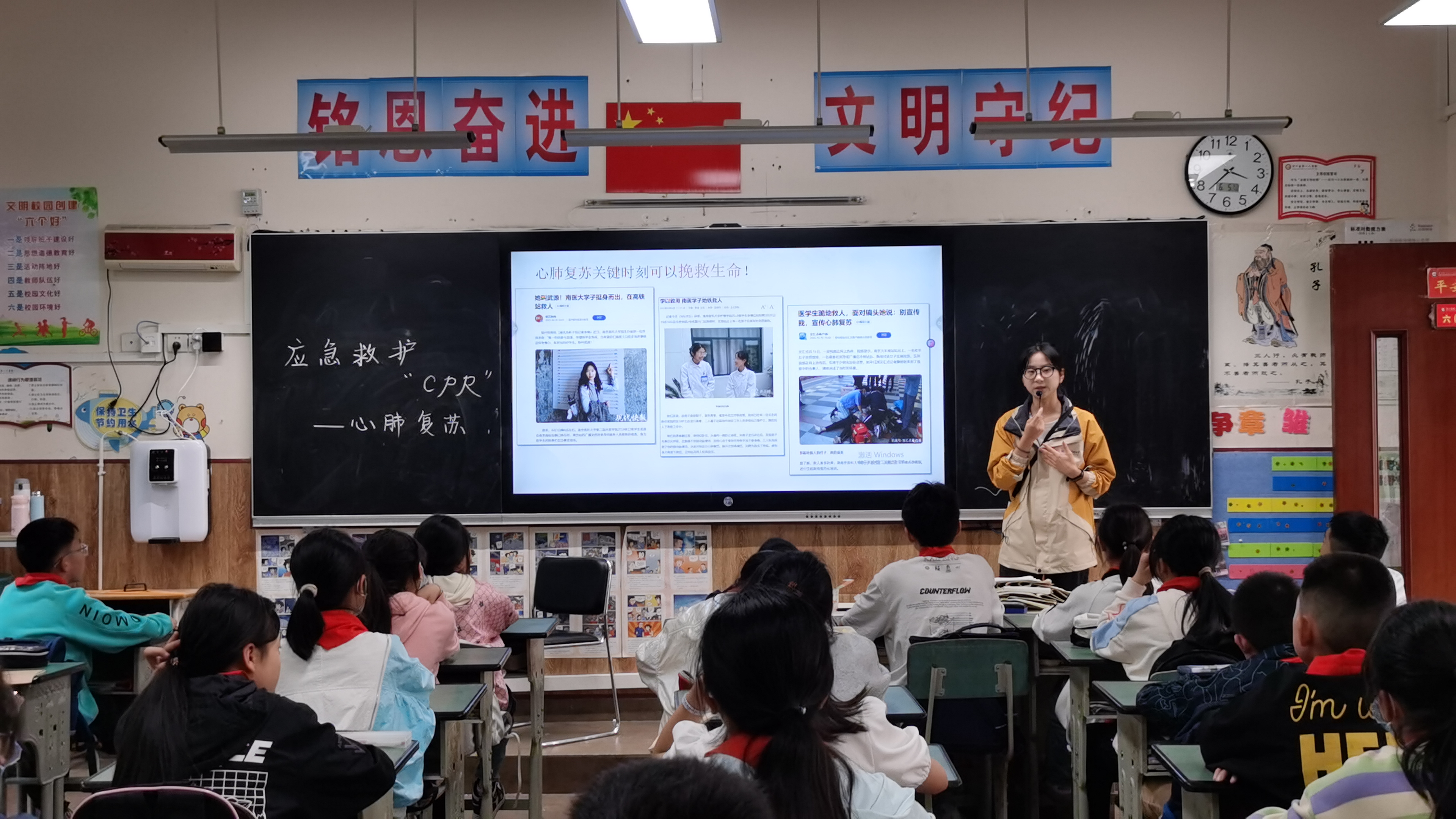 李芸霞在汶川县第一小学校为六年级三班学生开展“心肺复苏”急救知识培训