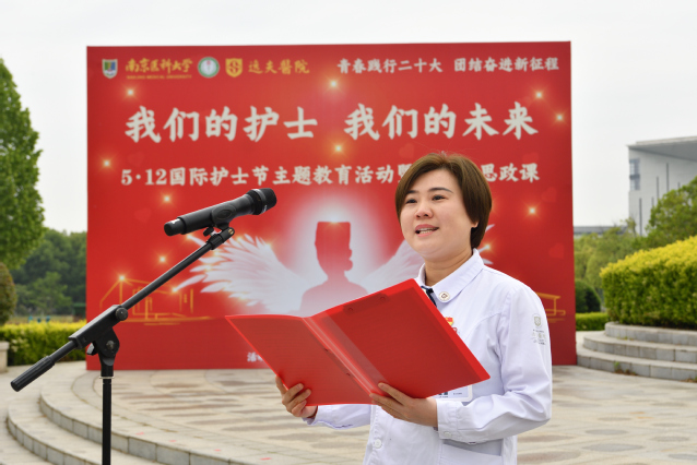 紧接着,附属逸夫医院护理部主任金利玉老师,带领即将毕业的2019级同学们代表重温了《南丁格尔誓言》。“谨奉人道主义精神,坚定救死扶伤的信念……”南丁格尔誓言永远存在于每个护理学子的心中,激励大家在护理事业上奋发努力。