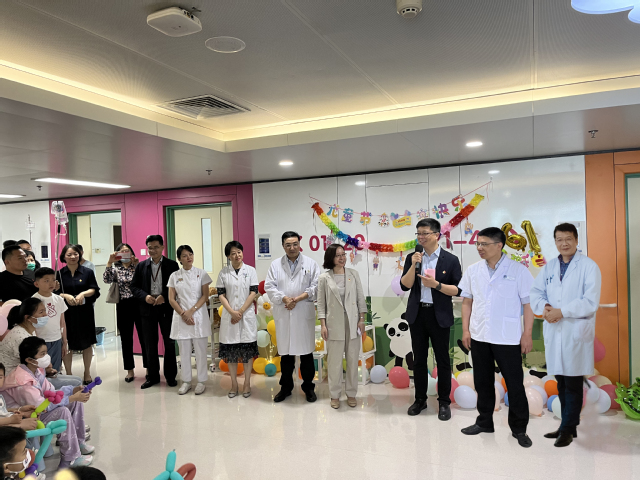 首先,儿童医院张爱华院长、唐维兵副院长、大内科方拥军主任,护理学院许勤院长、校工会李春副主席分别向在场的小朋友们表达了最真挚的节日祝福,衷心希望他们在家长的陪伴和医护人员的照护下尽快恢复健康,开心快乐成长,在场领导们代表学校和医院给孩子们发放了节日礼品。