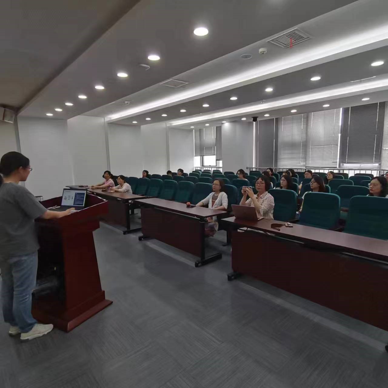 肿瘤康复与安宁疗护团队负责人朱姝芹副教授介绍了本次活动内容,胡洁蔓老师从身体成分的定义和测量、Inbody仪器使用流程、结果分析几个方面对身体成分分析仪使用展开讲解;许勤院长也从营养评估的角度对人体成分分析的具体内容进行了补充,并与参会者讨论交流不同研究中可能涉及的营养指标,鼓励老师、同学们进一步了解、使用Inbody身体成分分析仪。