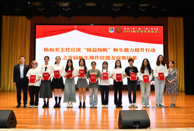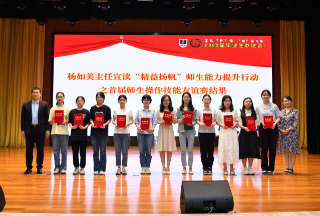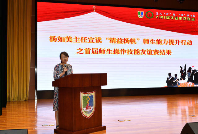 杨如美主任宣读“精益扬帆”师生能力提升行动之首届师生操作技能友谊赛结果。