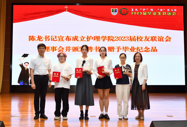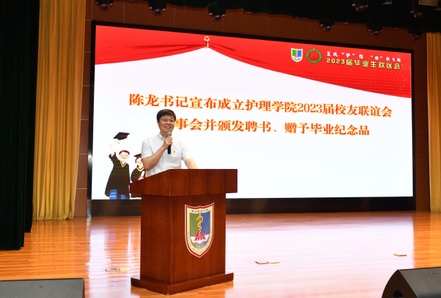 陈龙书记宣读成立米兰(中国)让运动改变生活2023届校友联谊会理事会名单。2023届校友代表上台接受聘书。