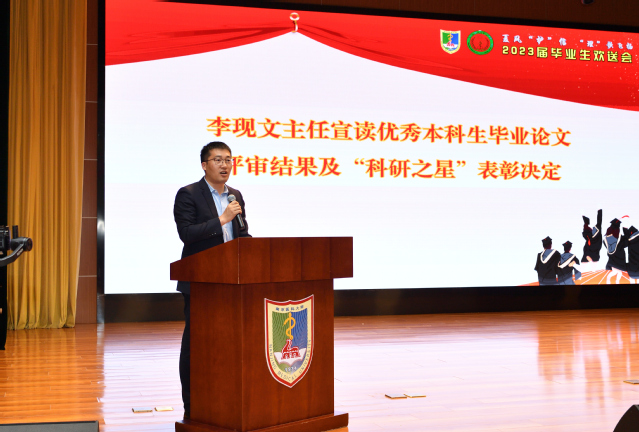 李现文主任宣读优秀本科生毕业论文评审结果及“科研之星”表彰决定。