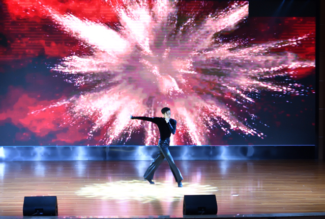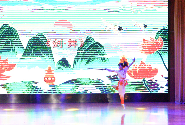 由江苏省第二十届运动会高校部武术比赛获奖者黄晓逸和2010年至2018年蝉联全国拉丁舞锦标赛业余组冠军沈辰之带来的武术舞蹈《剑˙舞》,刚柔并济、行云流水、摇曳生姿、洒脱自如。