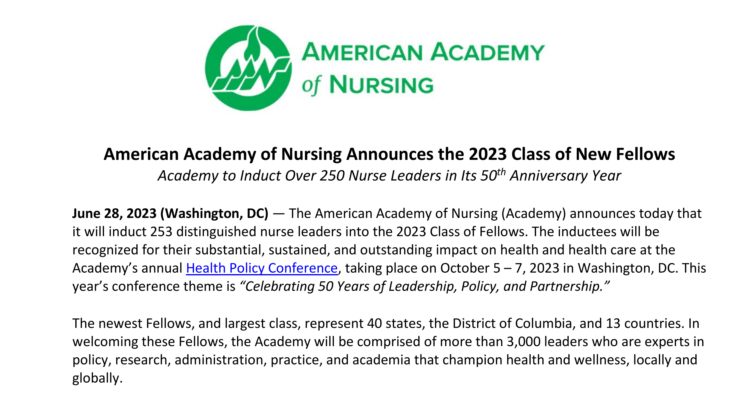 近日,美国护理科学院(The American Academy of Nursing)2023年院士评选结果正式发布,我院许勤教授榜上有名,正式当选为美国护理科学院院士(Fellow of American Academy of Nursing,FAAN)。美国护理科学院始建于1973年,旨在吸引全球护理人才引导护理学科发展,运用护理知识促进人类健康。美国护理科学院院士,是全球护理界最负盛名的荣誉之一。此外,本年度中国内地共有22名护理专家入选。