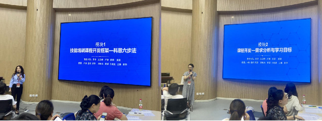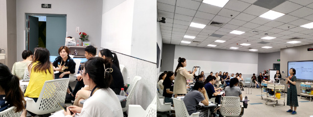南京医科大学情景模拟教学团队7位专家组织了2天的工作坊演练,将学员分成2个大组8个小组在课后进行小组学习。授课老师们从技能培训课程开发框架、需求分析与学习目标制定、教学策略与课程实施等方面进一步讲解,尤其针对课程开发中的学员评价、评价工具、标准设定等方面及课程评估与质控展开了详细讨论。各小组分别选取了临床护理带教工作中较为常见的操作案例进行分组案例展示,七位老师分别进行点评,并针对教学评价、学员演示安排等方面展开了讨论。参加培训的学员们每人分享了自己的学习体会,并进行了课前测试、课后测试、满意度测试。