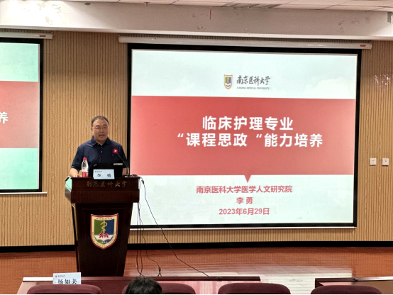 医学人文研究院李勇副院长针对临床护理专业课程思政能力培养进行了讲授,介绍了课程思政建设的时代背景,提出需结合专业特点分类推进课程思政建设,并分享了医学类专业“课程思政”建设的核心内容和常见问题。