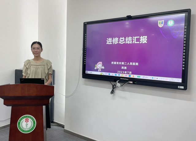 进修教师蒋莹莹(附属苏州医院)发言,进修时光转瞬即逝,尽管学习的过程充满挑战,但也因此收获了许多宝贵的知识和经验,为自己的未来铺平了一条坚实的道路。无论是理论教学、实践活动还是科研方面都有了新的思想、新的见解和新的方法。研修是一场心灵的历练,是向着彼岸的追寻,终点亦是起点,每一次总结、学习与实践都是为了更好的出发,她将带回新的教学、科研和临床实践经验等收获,明确新的发展目标,迈着坚定的步伐扬帆起航,向着更远更辽阔的海域前进!