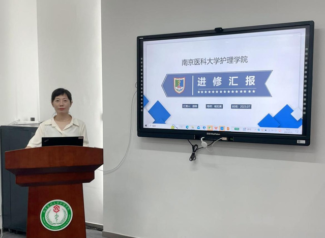进修教师邵燕(附属常州第二人民医院)发言,她对学院为临床护理师资培养提供的平台表示感谢;并从课程学习、学院活动、学系工作、进修成果等方面进行了汇报。通过教学进修,更加明确了后期理论教学及临床带教的方向。