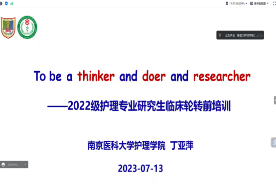 为进一步落实《南京医科大学护理学研究生培养方案》,加强研究生临床轮转管理,帮助研究生更好、更快地适应临床轮转,提升综合素质与实践能力,7月13日,米兰(中国)让运动改变生活开展2022级硕士研究生临床轮转下点前培训。米兰(中国)让运动改变生活副院长丁亚萍、学科办主任嵇艳、研究生辅导员张晓路及2022级全体研究生参加。