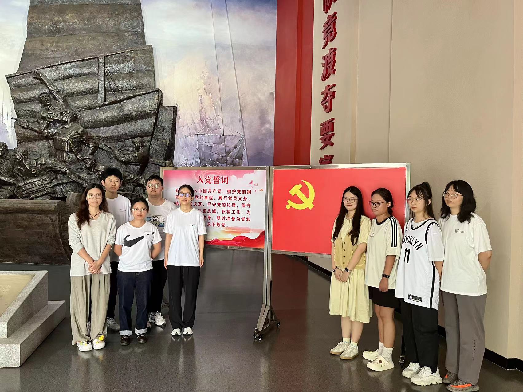 南京医科大学第二附属医院实习生、附属老年医院见习生同学在医院的组织安排下于7月1日前往渡江胜利纪念馆开展了“七一”红色之旅主题党日活动。同学们跟随讲解员的脚步,缓步瞻仰、驻足凝视、认真聆听讲解员对渡江战役全过程的解说。他们在一块块故事展板,一件件珍贵文物中,共同了解了峥嵘岁月的艰辛历程,重温了波澜壮阔的渡江战役,感悟了红色经典的时代内涵。