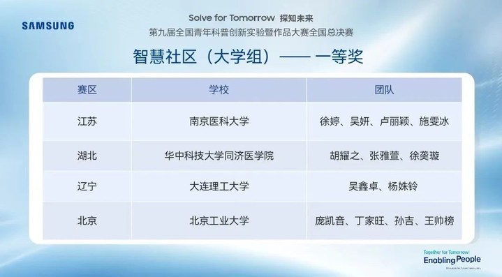 我院作品在江苏赛区57所高校参与的省选拔赛中脱颖而出,以一等奖入围全国赛资格。江苏省共有2项作品进入智慧社区组国赛,最终在全国总决赛中,本作品以总分第一名的好成绩获智慧社区大学组一等奖。