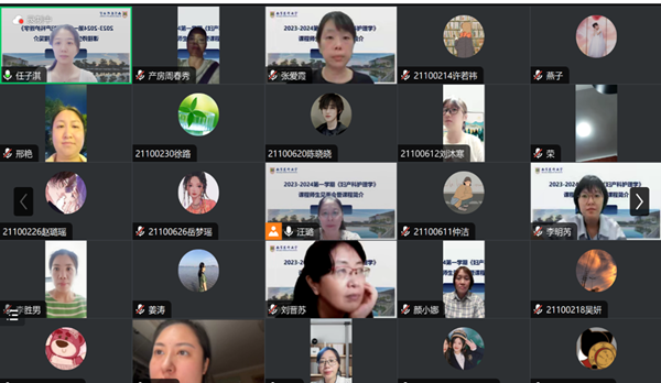 2023年9月1日晚19:00,《妇产科护理学》课程教学团队通过腾讯会议平台进行了2023-2024学年第一学期的师生见面会。会议由课程负责人汪璐老师主持,所有参与课程理论和见习教学的授课老师均参与会议,包括学院老师李明芮、任子淇、省妇幼的老师陈世荣、戎明梅、刘晋苏等,市妇幼的老师张爱霞,周春秀、曾丽华等以及21级2班及6班全体同学。
