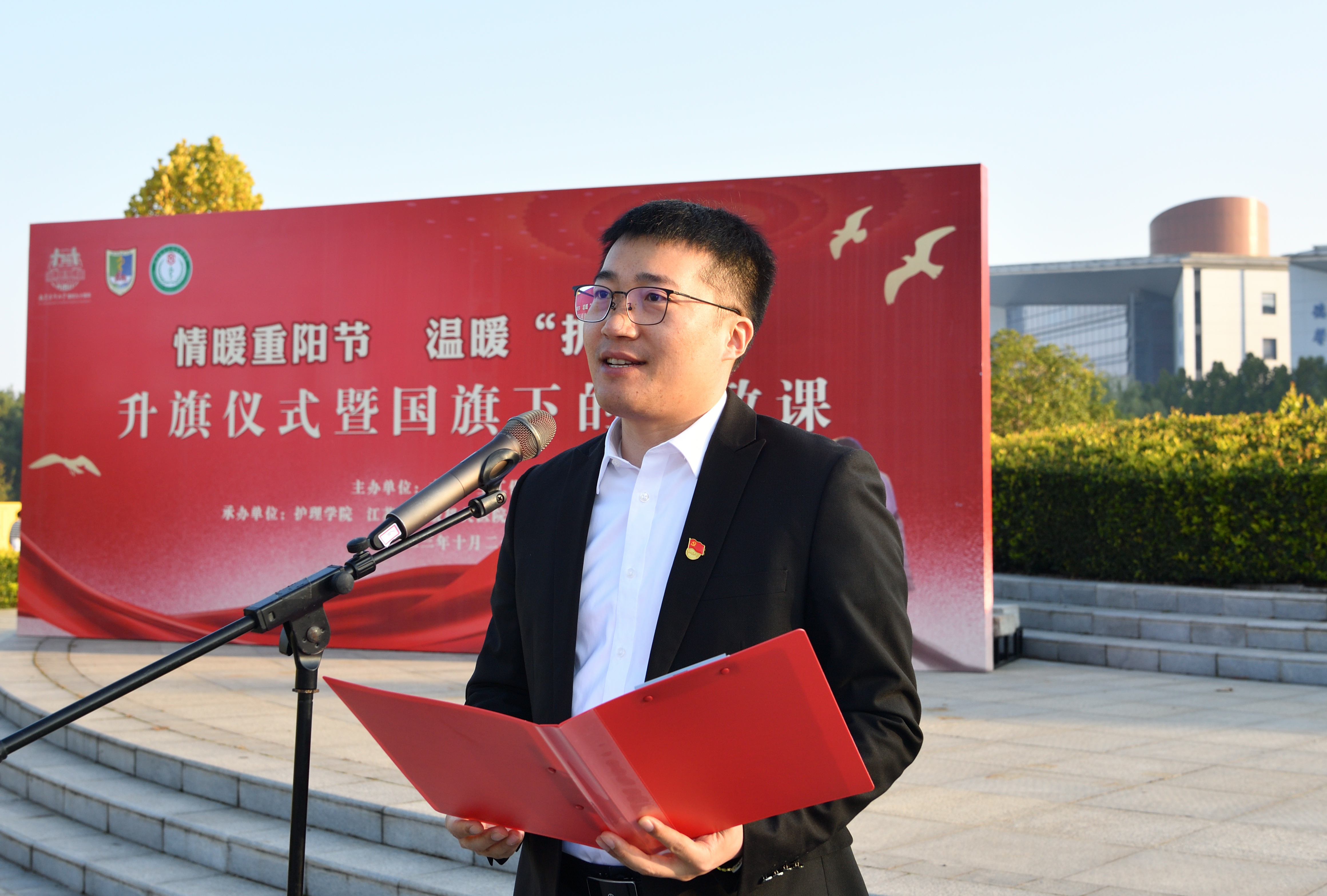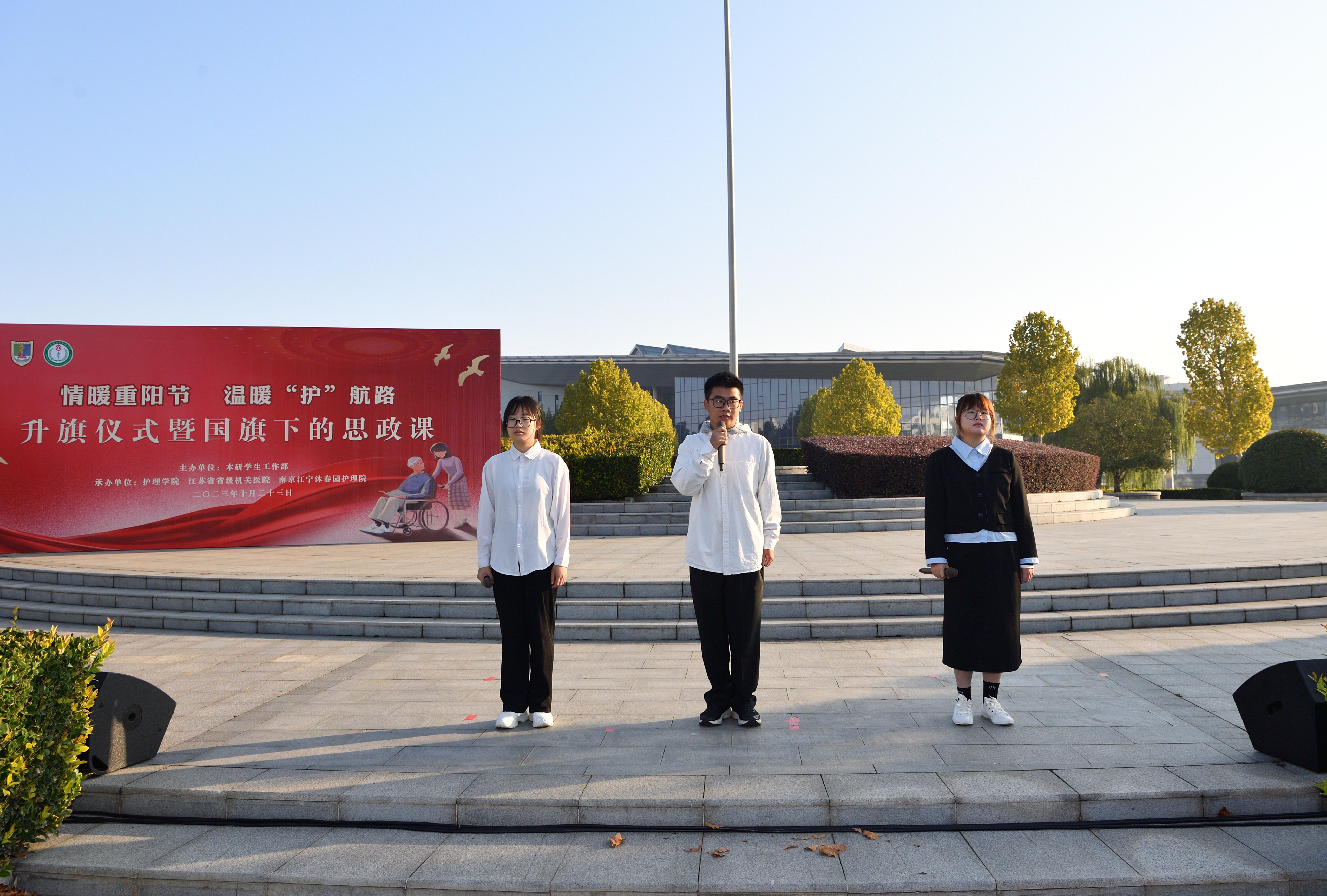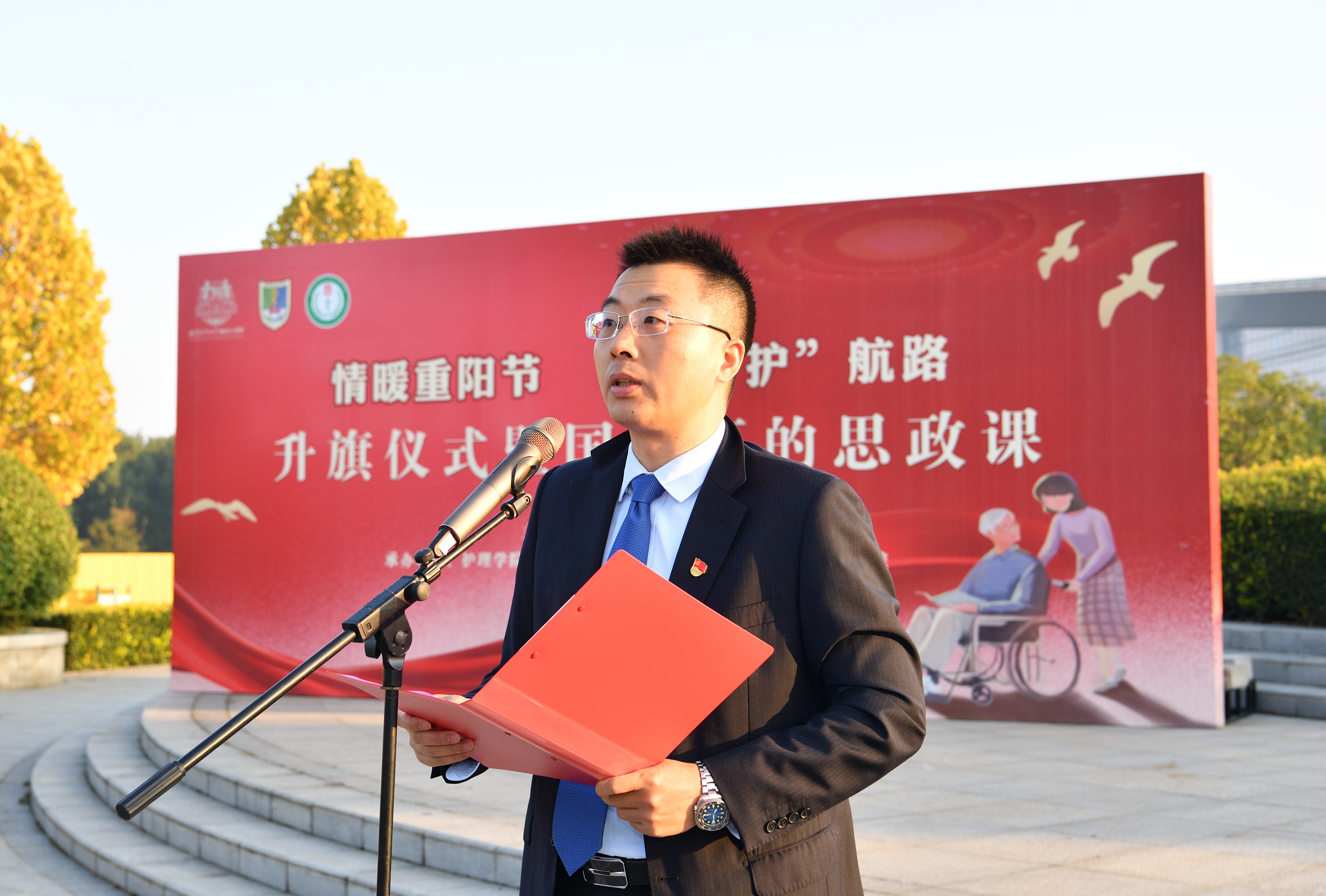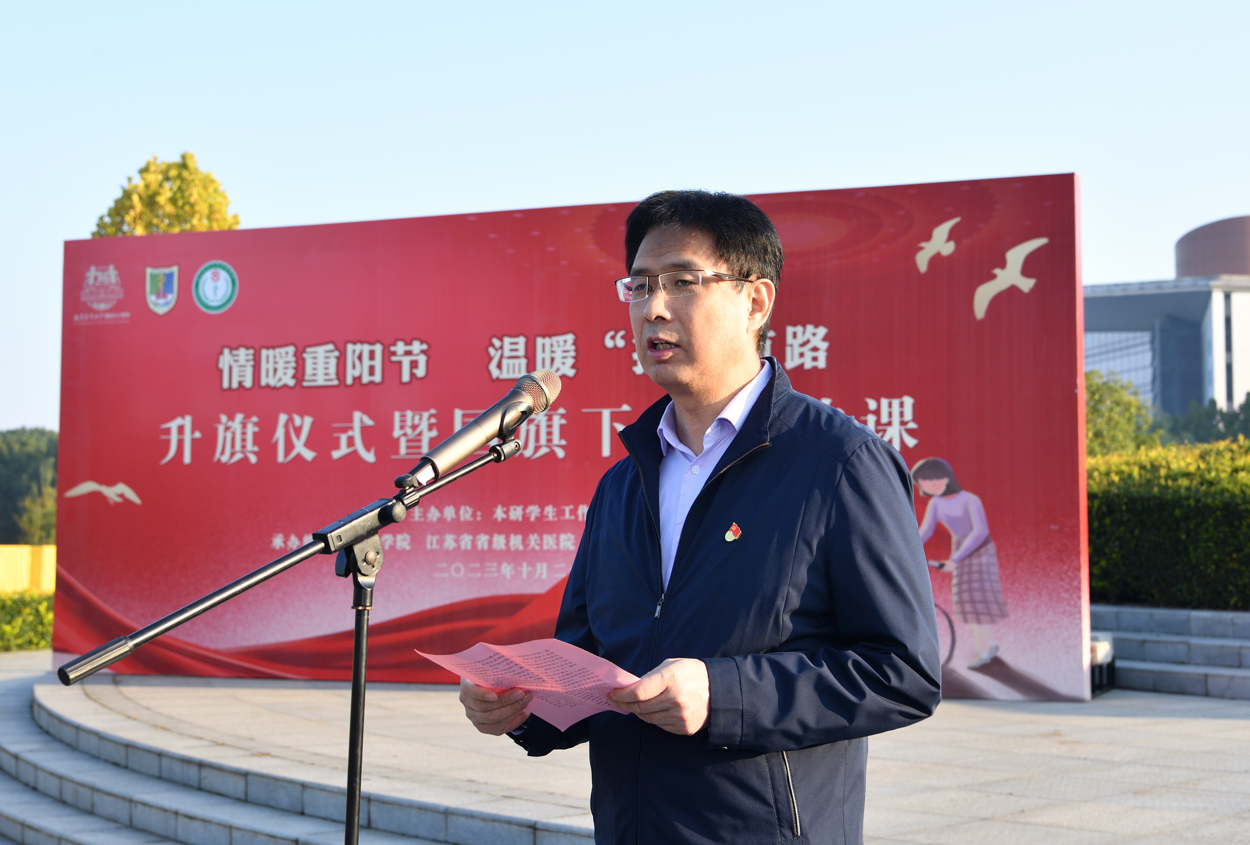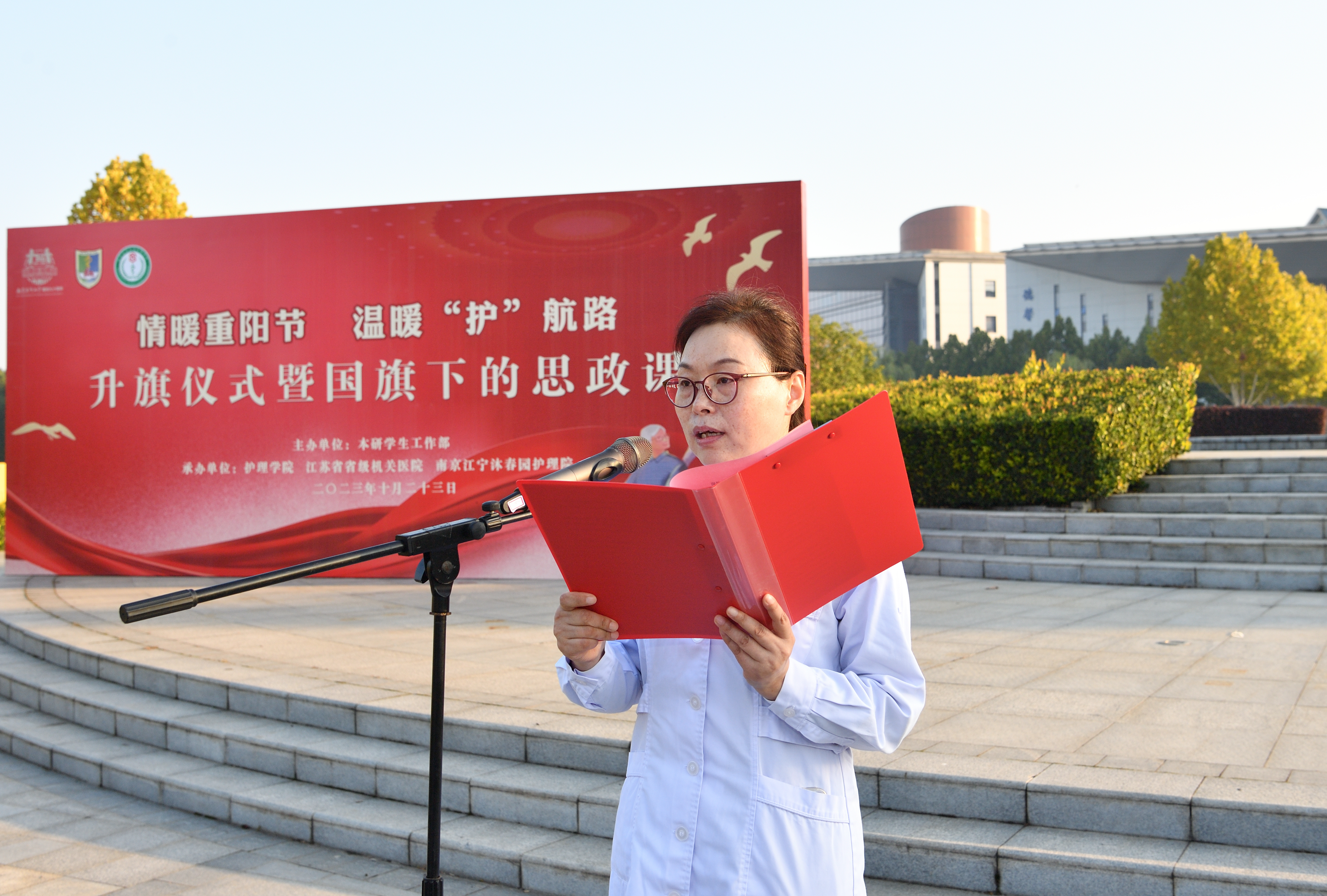 10月23日,南京医科大学米兰(中国)让运动改变生活联合江苏省老年医院、沐春园护理院举办“情暖重阳节 温暖‘护’航路”重阳节主题教育活动暨国旗下的思政课。江苏省老年医院院长、党委副书记何一然,护理部副主任李咏阳,教学办公室主任赵静,南京江宁沐春园护理院的医护代表,米兰(中国)让运动改变生活全体院领导、各行政办公室主任、全体辅导员、学系教师和兼职班主任代表,江宁校区全体本研学生参加活动。活动由院党委副书记、副院长苏益民主持。