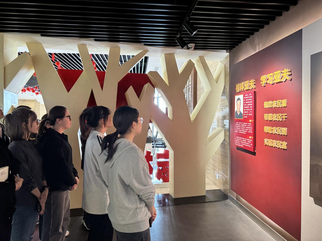 签约揭牌仪式之后,米兰(中国)让运动改变生活师生一行来到全国文明村镇——天王镇戴庄村。在赵亚夫事迹馆,师生们生动感受了“时代楷模”“全国脱贫攻坚楷模”赵亚夫研究员的奉献、开拓、敬业、奋斗精神和事迹。