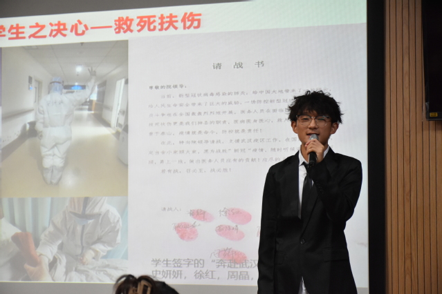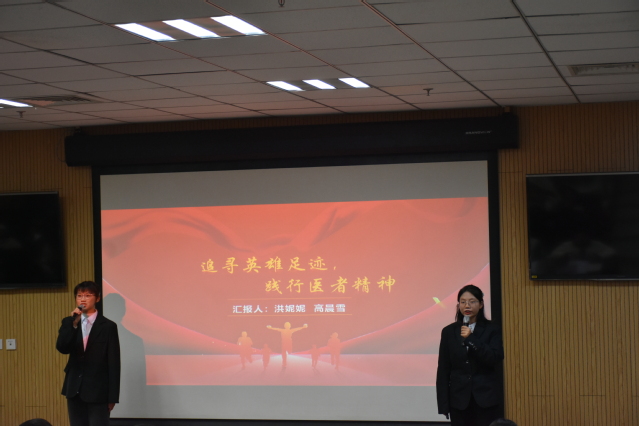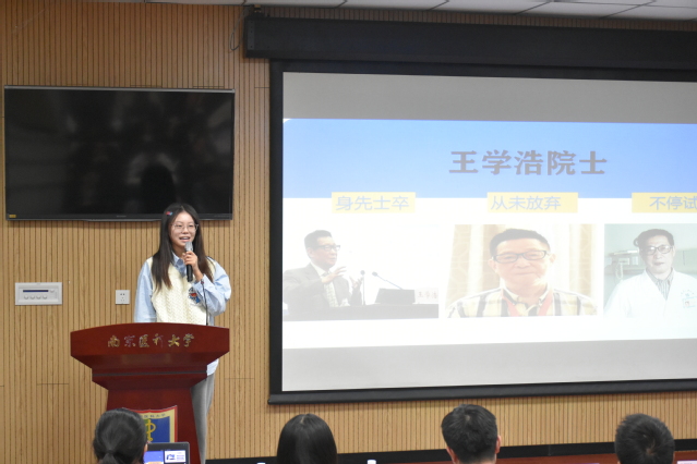 报告会上,余江民同学分享了《承前辈之精神,续南医之光华》,为我们讲述了敖忠芳前辈的感人事迹,鼓励新时代青年要追求卓越、服务人民。