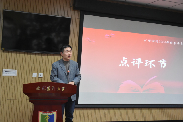 苏新骞老师在点评中肯定了参赛同学的充分准备,认为这是一种意义非凡的文化活动,既弘扬了红医精神,也激发了同学们对阅读的热爱。王大鹏老师点评中寄语护理学子:一是要阅读经典,经典阅读;二是要能读进去、也要读出来;三是既要丰富自我,也要书写大德。希望广大护理学子能在书籍的滋润下、老师的带领下、实践的历练下成长为政治立场坚定、精神风貌昂扬、道德品质卓越的新时代青年。