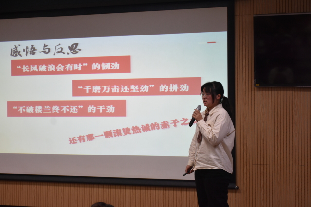 选手们的分享结束后,“微天使”微团课宣讲团李思彤为我们带来了《遇林则辟地,我辈岂蓬蒿》的主题宣讲。