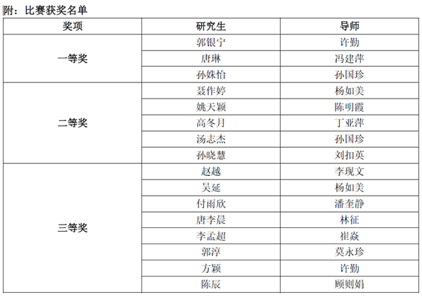 比赛共评选出一等奖3名,二等奖5名,三等奖8名(获奖名单附后)。