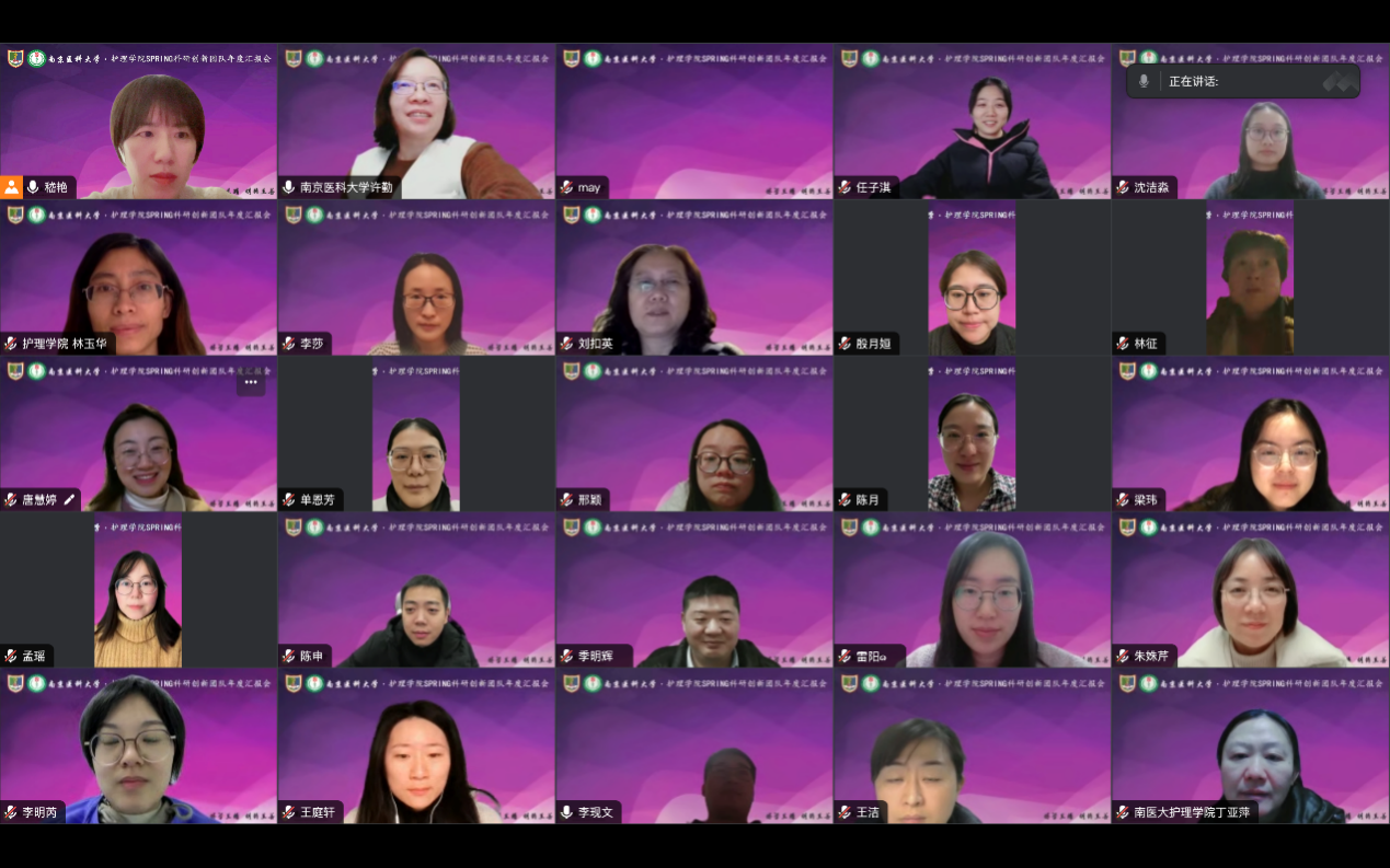 最后,许勤院长做总结发言。她首先强调青年教师的成长是团队未来发展的重要保障,青年教师应当从教育教学、科学研究、临床实践等全方面练就过硬的专业本领。在团队建设方面,一是创新外引内培思路,全方位培养、引进、用好人才,进一步优化人才队伍结构,构筑人才新高地;二是打造南医护理品牌,抓住特色优势,坚定自信自立,讲好南医护理故事;三是对标国内国际一流,高质量完成每一个任务,攀高行远,砥砺前行。