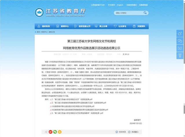 祝贺我院师生在第三届江苏省大学生网络文化节和高校网络教育优秀作品推选展示活动中荣获三个省级奖项!