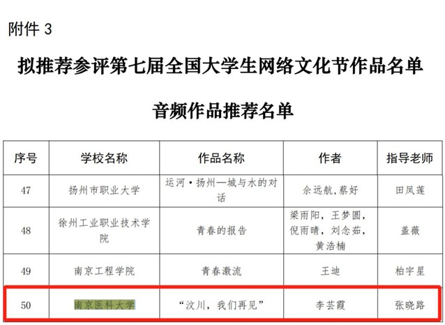 此外三项作品均拟推荐参评第七届全国大学生网络文化节作品或第七届全国高校网络教育优秀作品推选展示活动。