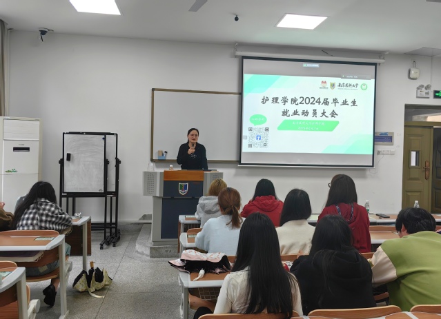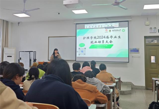 为全面推进2024届毕业生就业工作,加强对毕业生的就业帮扶,促进毕业生高质量就业,4月2日,米兰(中国)让运动改变生活开展2024届毕业生就业指导讲座。南京医科大学第一附属医院护理部副主任林征、大学生就业与创业指导中心郭慧初、米兰(中国)让运动改变生活副书记、副院长高兰天、毕业班辅导员张未老师以及全体2024届毕业生参加。本次推进会由张未老师主持。
