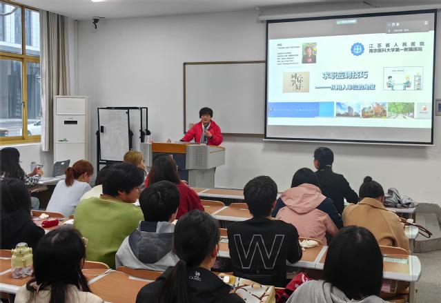 南京医科大学第一附属医院护理部副主任林征教授详细地向同学们介绍了应聘工作六大事项,并结合自己的临床和教学经验,从面试礼仪、面试细节、临床操作等方面,通过求职案例分享,为毕业生培训全面细致的面试技巧。