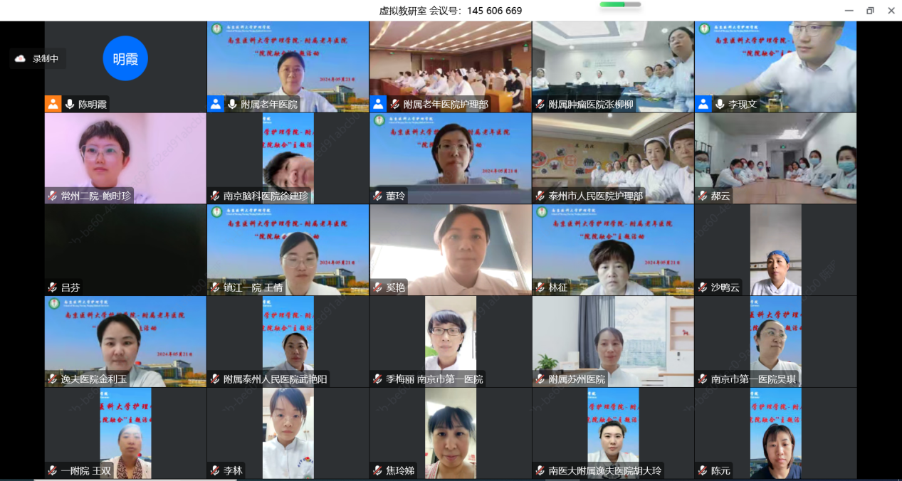 5月21日下午,米兰(中国)让运动改变生活与附属老年医院联合举办了“院院融合”线上主题活动。米兰(中国)让运动改变生活院长助理李现文、临床护理学系主任陈明霞,附属老年医院护理部主任蔡崔春、老年医学科主任欧阳晓俊、全体护士长及护理骨干,各附属医院护理管理人员及教学骨干共100余人参加本次活动。