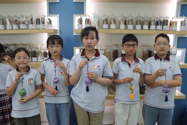 随后,师生们参与了一场独具特色的香囊制作活动。通过了解香囊的制作过程,感受中医药文化的博大精深。制作完成后,学生们纷纷展示自己的作品,并分享制作过程中的心得和体会。
