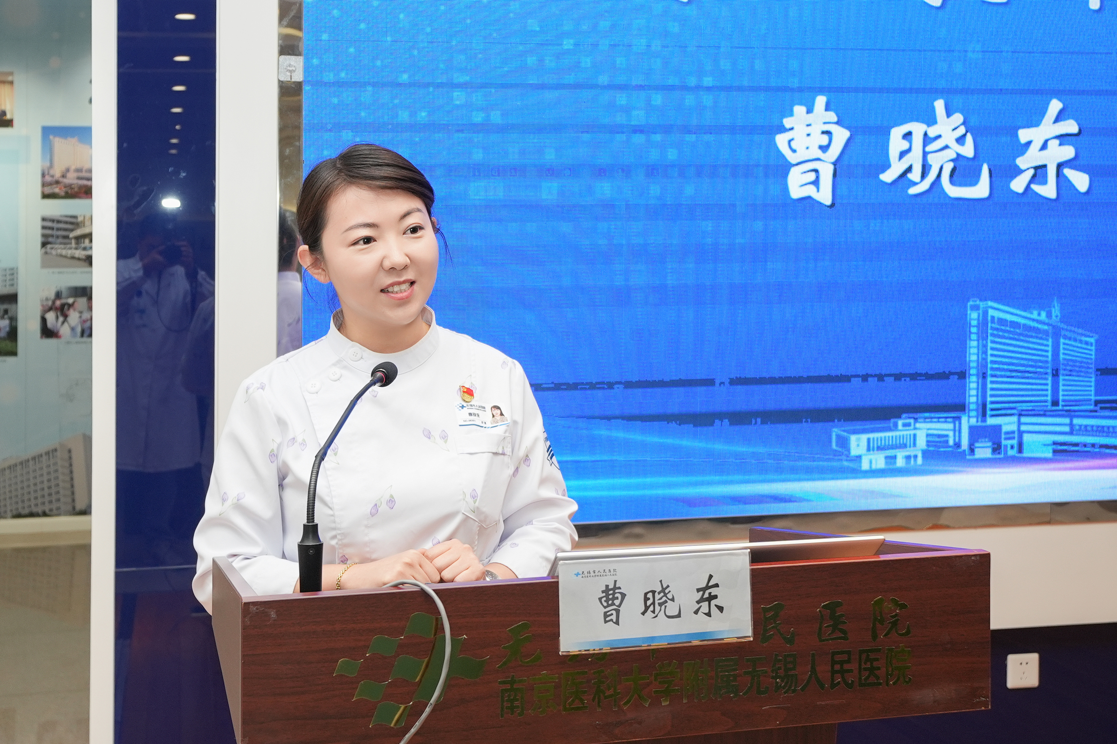 南京医科大学附属无锡人民医院护理部副主任、护理教研室主任曹晓东致辞。她希望同学们在学习中寻找成长新价值,在专业中标定人生新坐标,以实际行动践行使命与担当,努力成为适应时代需求的新型护理人才。