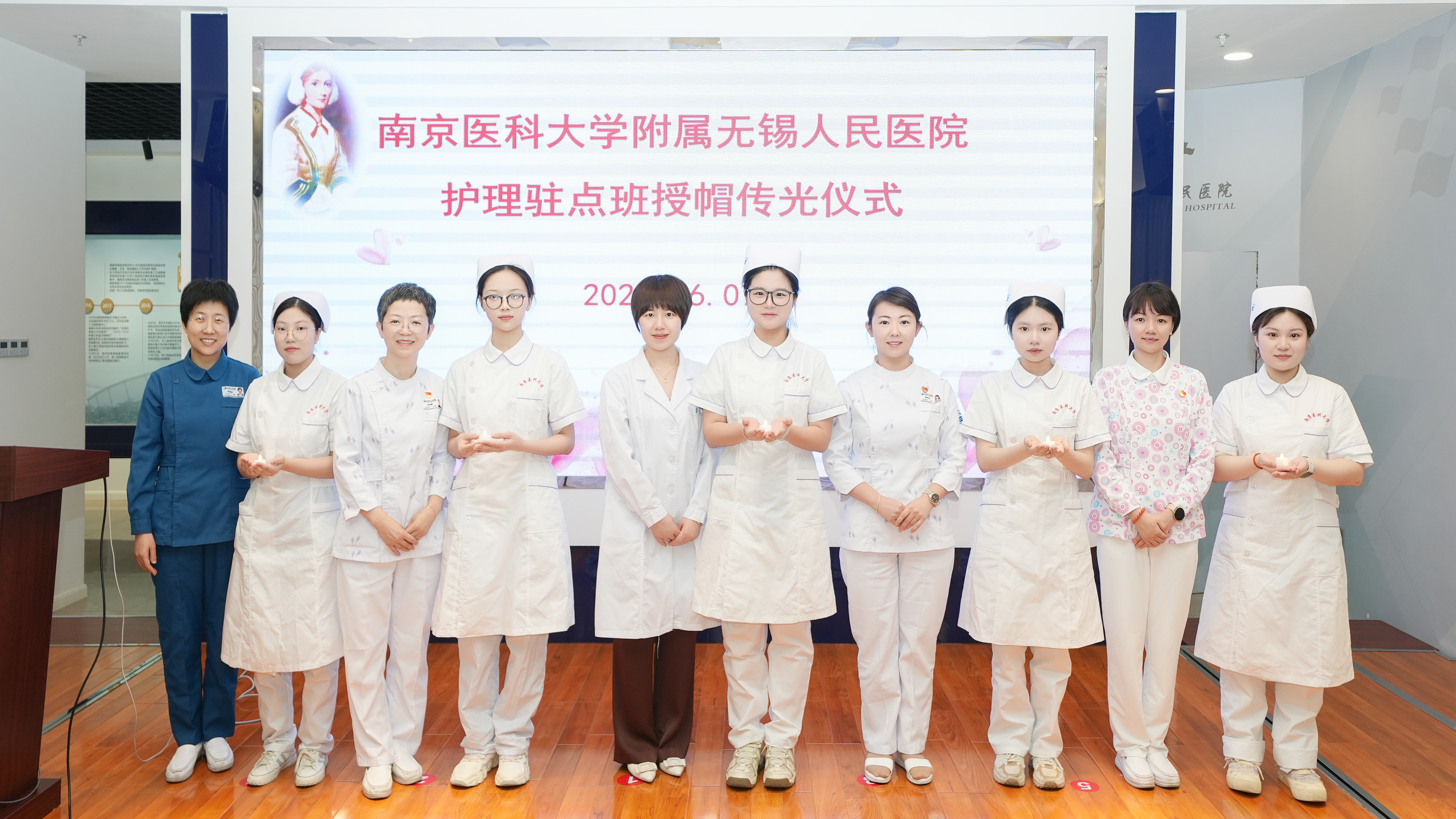 南京医科大学附属无锡人民医院护理教研室课程负责人、教师代表及2021级护理驻点班全体学生参加仪式。