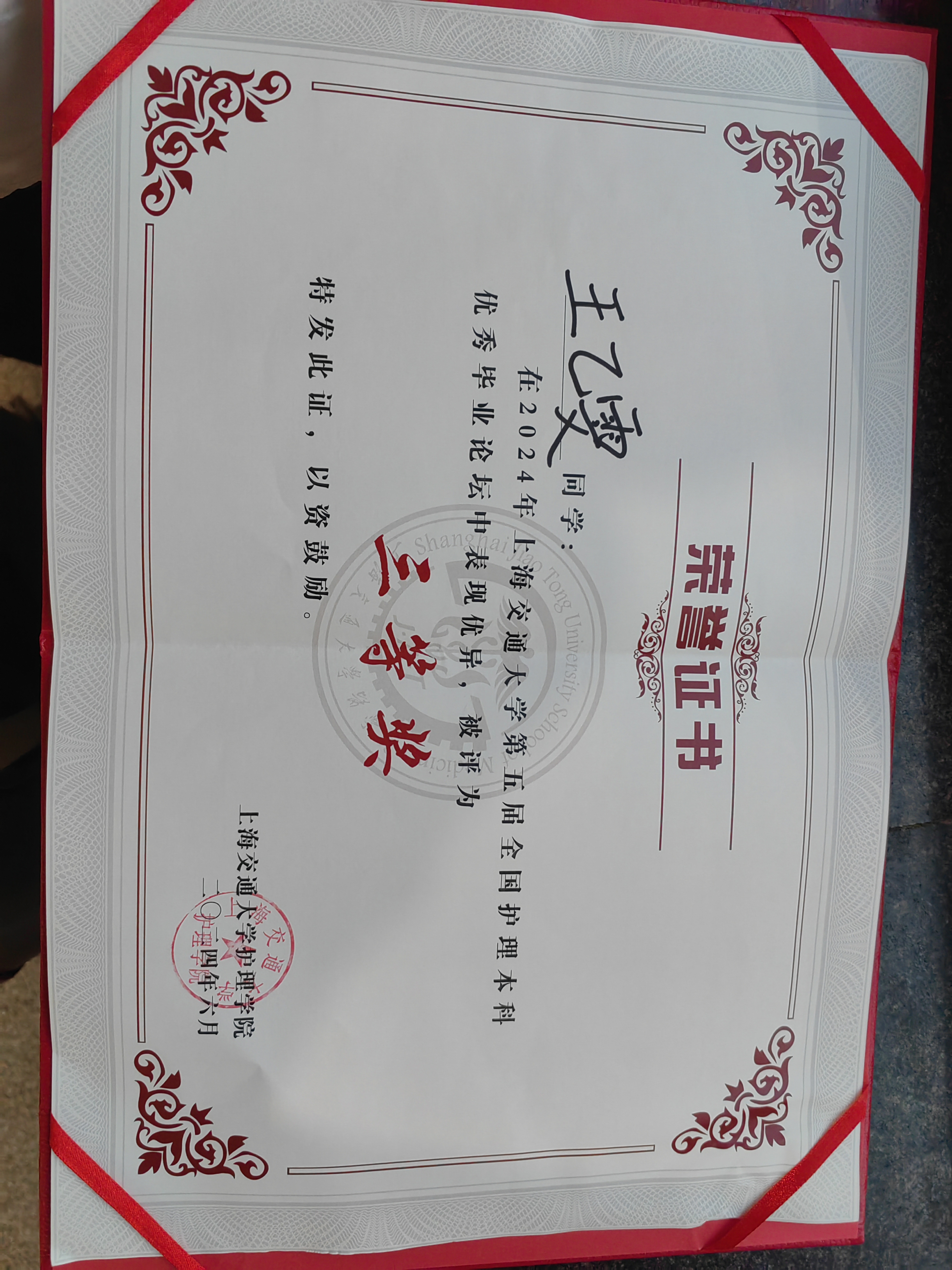 6月20日,我院2020级本科生王乙雯(指导老师:沈燕、嵇艳)受邀参加由上海交通大学米兰(中国)让运动改变生活主办的第五届全国护理本科优秀毕业论坛暨优秀本科生毕业论文评选活动做口头汇报。