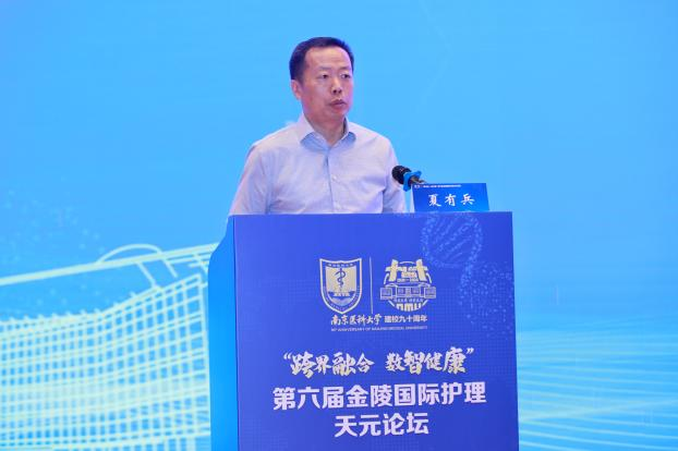 南京医科大学党委副书记、副校长夏有兵教授代表学校向与会专家、校友及参会代表表示诚挚欢迎。他指出,护理工作对全面推进健康中国建设、积极应对人口老龄化具有重要作用。学校积极推动护理学科发展,培养了一大批德才兼备、素质全面的护理人才,有力推动了护理领域水平的提升。在新的时代背景下,本次会议的召开对医疗健康及护理领域新质生产力发展具有非常重要的现实意义。同时也期待能以本次会议为契机,通过传递新理念、交流新技术、共享新成果为护理事业的快速发展注入新活力,为建设健康中国作出新贡献。